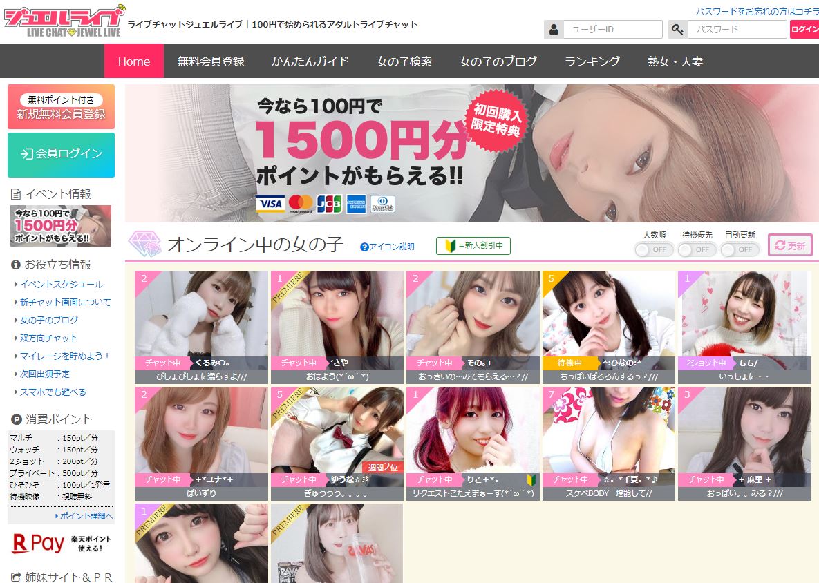 まず、「ジュエルライブ」は、主に20代前半の若い女性が活躍しており、エッチで若い女の子と楽しみたい方向けとなっています。